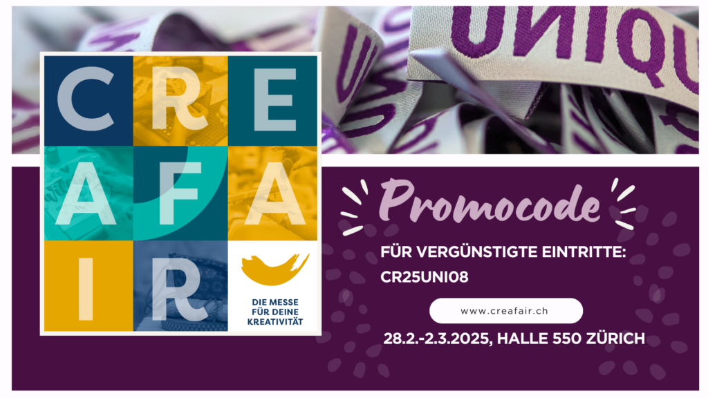Vom 28. Februar bis 2. März 2025 findet die Messe Creafair wieder in der Halle 550 in Zürich statt. Besuche uns am Stand B124! Mit dem Promocode CR25UNI08 kannst du vergünstigte Eintrittskarten kaufen. Die CREAFAIR ist eine Plattform für Austausch, Inspiration, Begeisterung und Kreativität. Sie lädt dazu ein, Handgemachtes zu erleben, neue Materialien zu entdecken […]