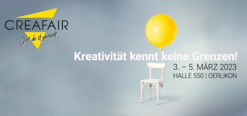 Besuche uns vom 3.-5. März 2023 an der Creafair, der grössten Kreativmesse der Schweiz. Halle 550, Oerlikon / Stand B125 Mit dem Promocode: CREA23UNI008 erhältst du Fr. 5.- Ermässigung für deine Eintrittskarte. (Gültig nur für Erwachsene und nur online) . Wir freuen uns auf deinen Besuch!